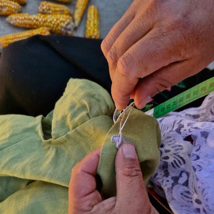 Every piece begins with inspiration. From vintage samples, archival designs, and forgotten techniques, we pay close attention to motifs, stitch types, and details that carry the essence of each community. At the same time, inspiration comes from childhood memories, the colors of nature, and everyday experiences, blending personal stories with cultural heritage.